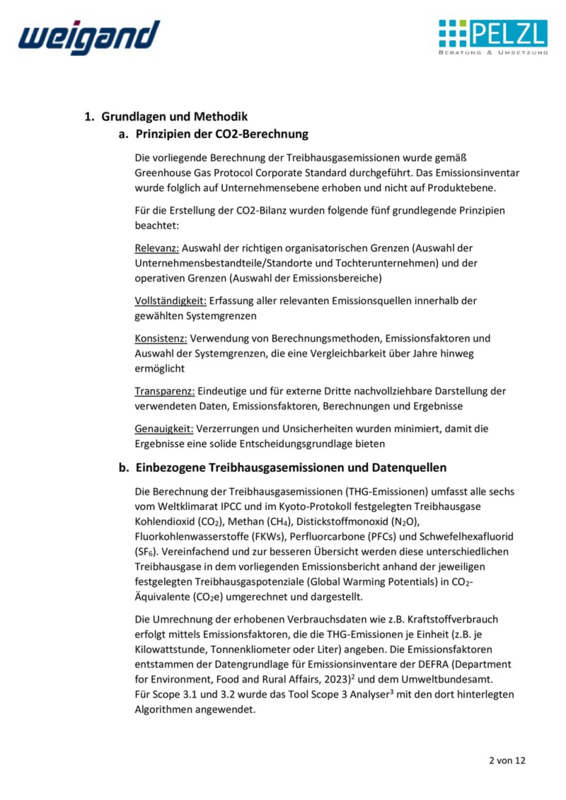 CO₂-Emissionen & Nachhaltigkeit bei Weigand