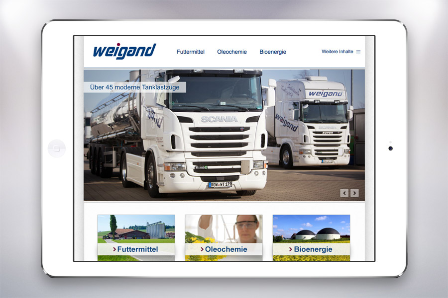 Im Jahr 2014 ist Weigand ein überregional aktives Unternehmen, das sich in Sachen Logistik und Transport als starker und zuverlässiger Partner erwiesen hat. Das muss nach außen kommuniziert werden. Deshalb bekommt die Firma Weigand einen neuen Internetauftritt, der allen Kunden und denen, die es noch werden wollen, besten Service sowie nützliche Informationen liefert. Der neu eingeführte News-Bereich hält alle Interessierten über die neusten Entwicklungen im Unternehmen sowie der Branche auf dem Laufenden, während Schnellzugriffe auf wichtige Dokumente sowie Anfragemöglichkeiten für Transportaufträge Organisation und Kommunikation erleichtern. Auch die Themen Öffentlichkeitsarbeit und Personal werden weiter vorangetrieben. Mit innovativen Aktionen wie zum Beispiel einer praxisorientierten Verkehrserziehung bei den 4. Klassen der Rosenborn-Grundschule Harsefeld, dem 3. ProLKW-Tag in Sittensen sowie beim Sommerfest werden Kontakte geknüpft, Beziehungen vertieft und Interessen geweckt. Ein ganz besonderes Highlight: 2014 verleiht die Firma zum ersten Mal den Weigand-Award. Mit diesem wird derjenige Fahrer geehrt, der in den vorangegangenen zwölf Monaten in folgenden Disziplinen am stärksten überzeugen konnte: Fahrzeugkosten, Dieselverbrauch, Fehlerhäufigkeit und Anzahl der Fehltage. Derart leistungsstarke Fahrer sind wichtig, denn schließlich umfasst der Weigand-Fuhrpark mittlerweile 45 Sattelzugmaschinen, von denen 40 % die EURO-6-Norm und 60 % die EURO-5-Norm erfüllen. Ergänzt wird der Fuhrpark zudem durch 56 Auflieger.
