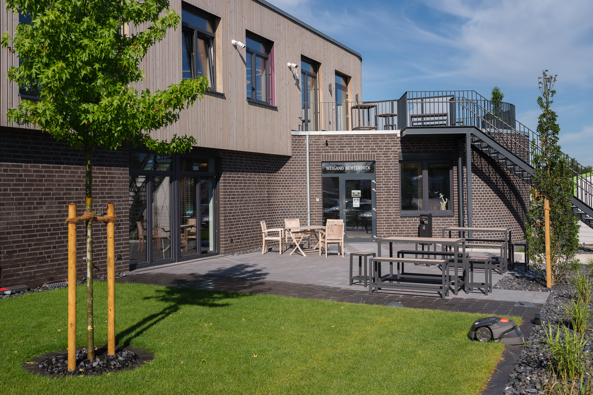 Zusammengehörigkeit wird bei Weigand großgeschrieben – umso sehnlicher wird von der Geschäftsführung wie auch von den Mitarbeiter/innen die Einweihung des Neubaus erwartet. Im Jahr 2020 ist es endlich so weit: Corona-bedingt fällt der Festakt zwar etwas kleiner aus – nichtsdestotrotz werden sämtliche Erwartungen voll erfüllt. Mit seiner offenen Bauweise, dem durchdachten Raumkonzept und den vielen Begegnungsräumen verleiht der Neubau dem Teamgedanken der Firma Weigand architektonisch Ausdruck. In der Hochzeit der Pandemie bietet er zudem ausreichend Platz, um regelkonform arbeiten und den Mitarbeiter/innen dadurch maximale Sicherheit garantieren zu können. Trotzdem bleiben das gemeinsame Miteinander und die Kommunikation mit den Kolleg/innen situationsbedingt oft auf der Strecke. Deshalb ruft die Firma Weigand eine interaktive Möglichkeit für den Austausch ins Leben: „Achterdeck digital“ bietet ab September 2021 allen Fahrern und Mitarbeitern regelmäßig eine Plattform für den interaktiven Austausch. Fragen, Anregungen und Kritik stehen hier genauso im Fokus wie die Stärkung des Wir-Gefühls – gerade in Zeiten, in denen Homeoffice, Quarantäne und Abstandsregelungen noch immer dominieren, ist das ein Zeichen, das durch die Bank gut ankommt. Apropos Bank: Auf die Schulbank geht es seit 2021 für die Mitarbeiter/innen im Weigand Trainingscenter BKF-Tankwagen – aber nur im übertragenen Sinne. Das neue Ausbildungskonzept bietet den Berufskraftfahrer/innen unbezahlbare Einblicke in wichtige Unternehmensbereiche und bildet sie binnen 15 Tagen zum Tankwagenfahrer aus. Praktisches Fahrtraining auf dem Hof des Betriebsgeländes in Sittensen ist natürlich inklusive.