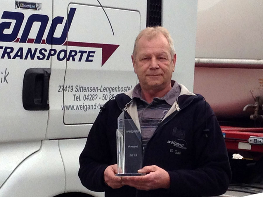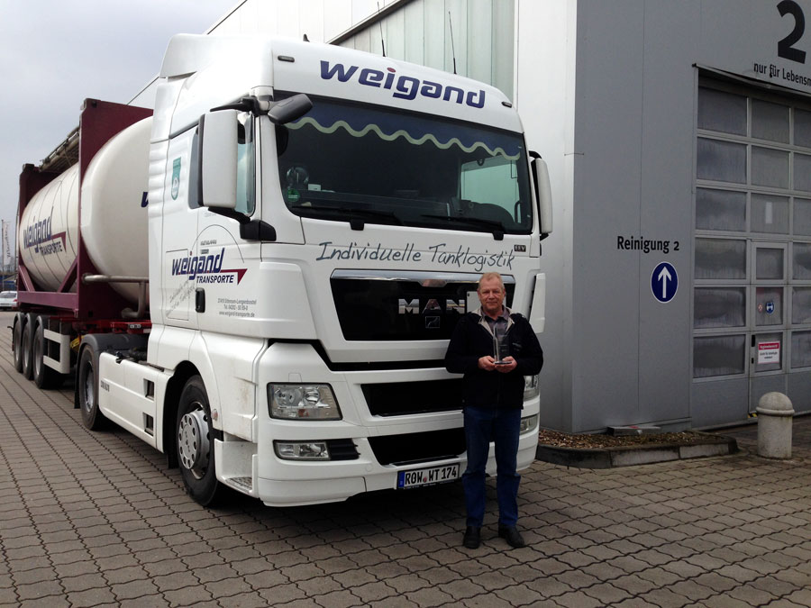 Denn seit Neuestem vergibt die Firma Weigand jedes Jahr eine Auszeichnung an den besten Kraftfahrer der letzten zwölf Monate. Passend zur Philosophie der Spedition („Wir wollen uns verbessern! Ständig!“) wird dieser Preis vergeben, um die Weigand-Fahrer im Wettbewerb zu noch besseren Leistungen anzuspornen.