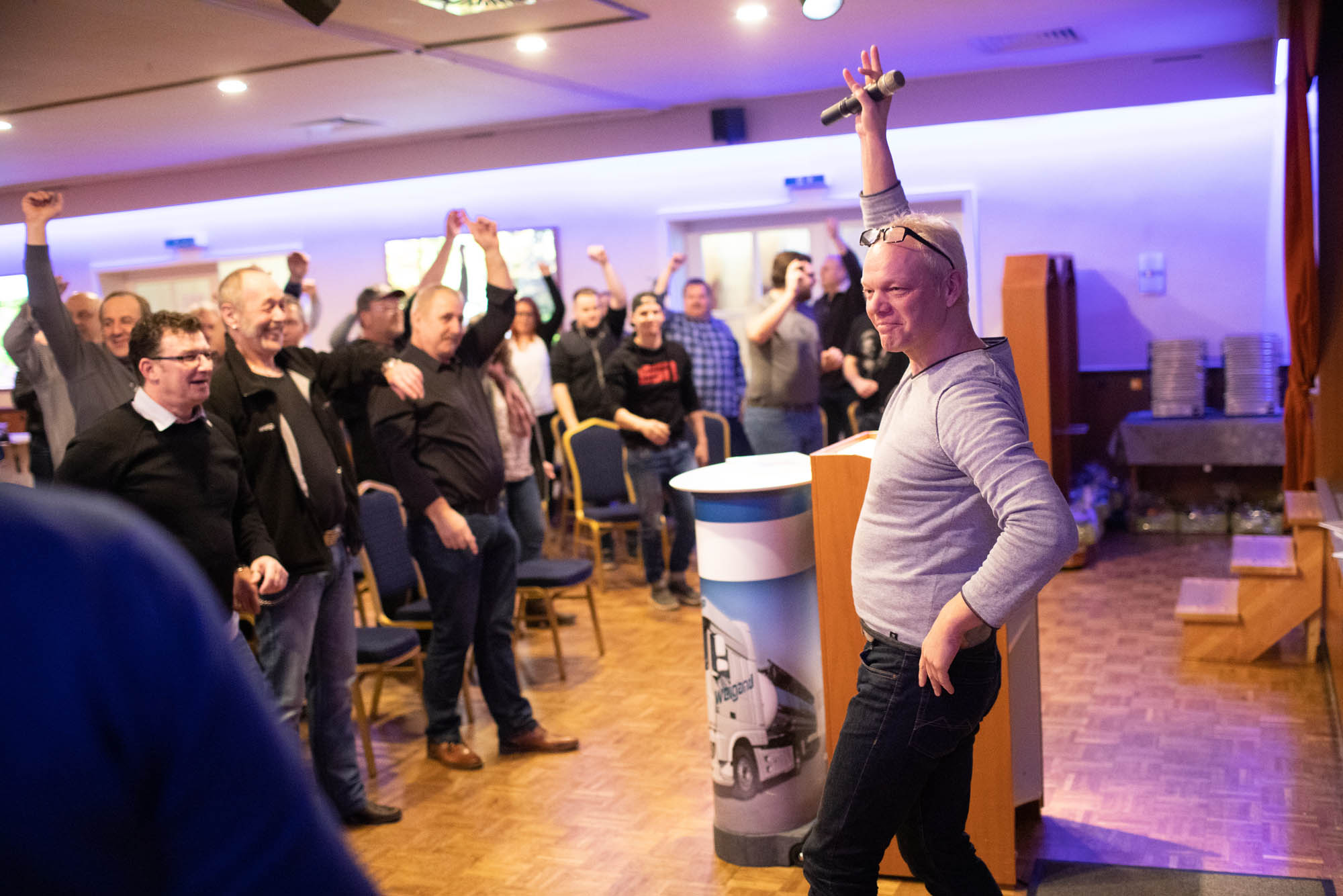 Anschließend nutzten die Mitarbeiter ausgiebig die Möglichkeit, ihren Chefs Fragen zu stellen, für die im betrieblichen Alltag vielleicht manchmal keine Zeit bleibt. Auf Augenhöhe wurden wichtige Themen besprochen, die die Belegschaft beschäftigen. Für beide Seiten ist das ein Gewinn, denn die Geschäftsführung erfährt, was ihre Mitarbeiter bewegt und die Belegschaft bekommt gehaltvolle Antworten zu ihren Fragen. Losgelöst von der geschäftigen Hektik fallen den Teilnehmern am Weigand Powertag oft auch Fragen ein, die sonst schlichtweg vergessen werden. Einer der Kollegen resümiert: "Die Fragestunde mit den Chefs Karsten und Stefan war sehr gut, es gab gute Informationen zum Jahr 2019 und es wurde auf die Fragen der Fahrer eingegangen."
