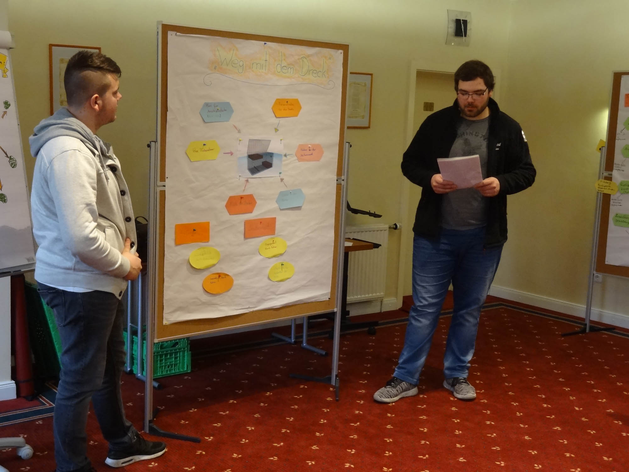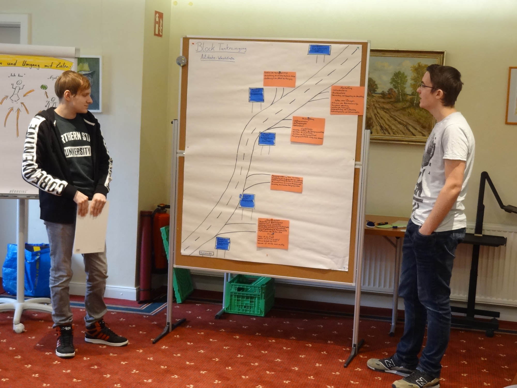 Mit den Azubi-Tagen wollte Weigand seinen Auszubildenden aber auch vermitteln, dass ihre Stimme gehört wird. Im Rahmen des Coachings durften sie betriebliche Themen bearbeiten, aus ihrer Perspektive und mit ihren Erfahrungen. So ging es beispielsweise um den Ablaufplan der Ausbildungszeit im Waschross, um den Sortier- und Wartungsplan für eine LKW-Transportkiste oder um den Work-Flow zum Thema "Zusatzleistungen/-kosten". Sie erarbeiteten und visualisierten gemeinsam Ergebnisse, präsentierten diese ihrem Ausbildungsleiter und diskutierten anschließend über die in Gruppenarbeit entstandenen Lösungsvorschläge. Ein schönes Feedback an die Auszubildenden: Die Ergebnisse fließen direkt in den kontinuierlichen Verbesserungsprozess ihres Ausbildungsbetriebs ein und haben das Zeug dazu, wirklich etwas zu verändern.