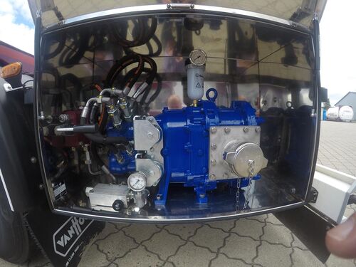 Für den Transport unserer und fremder 20’-Tankcontainer haben wir nun in weitere ADR-Fahrgestelle der Firma van Hool investiert. Die Fahrgestelle sind mit einer modernen leistungsstarken Vogelsang-Drehkolben-Pumpe ausgestattet und können somit ohne fremde Hilfe technische und chemische Produkte mit einer Förderleistung von bis zu 121 m3/h be- und entladen.
