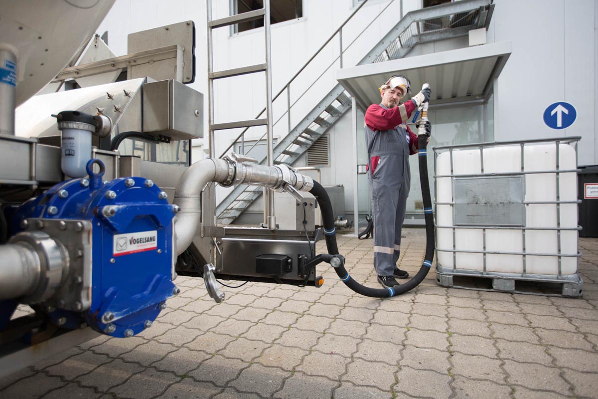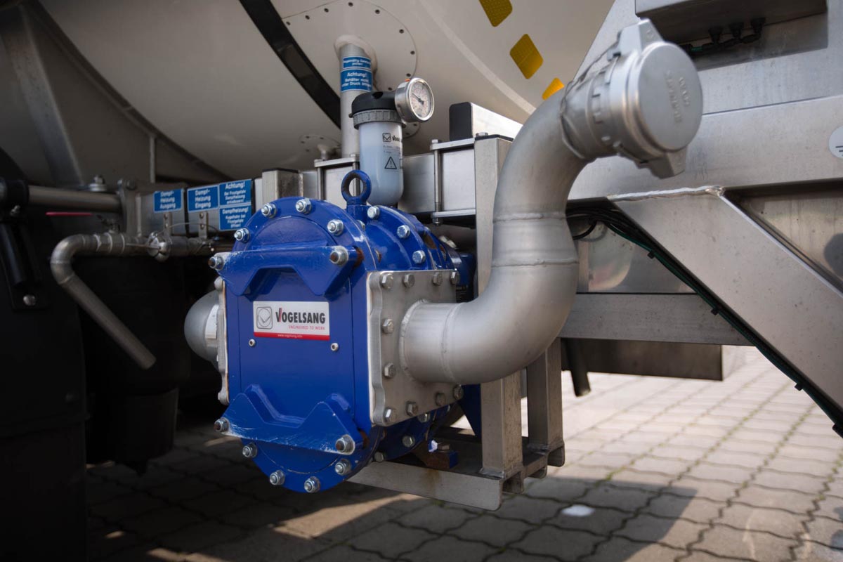 Die robuste Vogelsang-Pumpe zeichnet sich durch ihre spezielle Bauweise aus und kann auch aggressive Chemikalien und Medien mit einer hohen Viskosität pumpen. Durch die Möglichkeit zur Umkehr der Förderrichtung ist sie sowohl zum Be- als auch zum Entladen geeignet. Die Pumpe selbst ist aus Edelstahl und arbeitet mit elastomerbeschichteten Kolben. In ihrer Robustheit bietet sie einen breiten Einsatzbereich, gerade auch für Chemikalien oder in der Landwirtschaft. Selbst gröbere Verunreinigungen des zu pumpenden Materials stören die Funktion der Pumpe nicht. Dazu finden Sie ein sehr gutes Video auf der Internetseite des Herstellers, wenn Sie diesem Link folgen: http://www.vogelsang.info/de/produkte/drehkolbenpumpen/vx-serie/vx136/uebersicht/