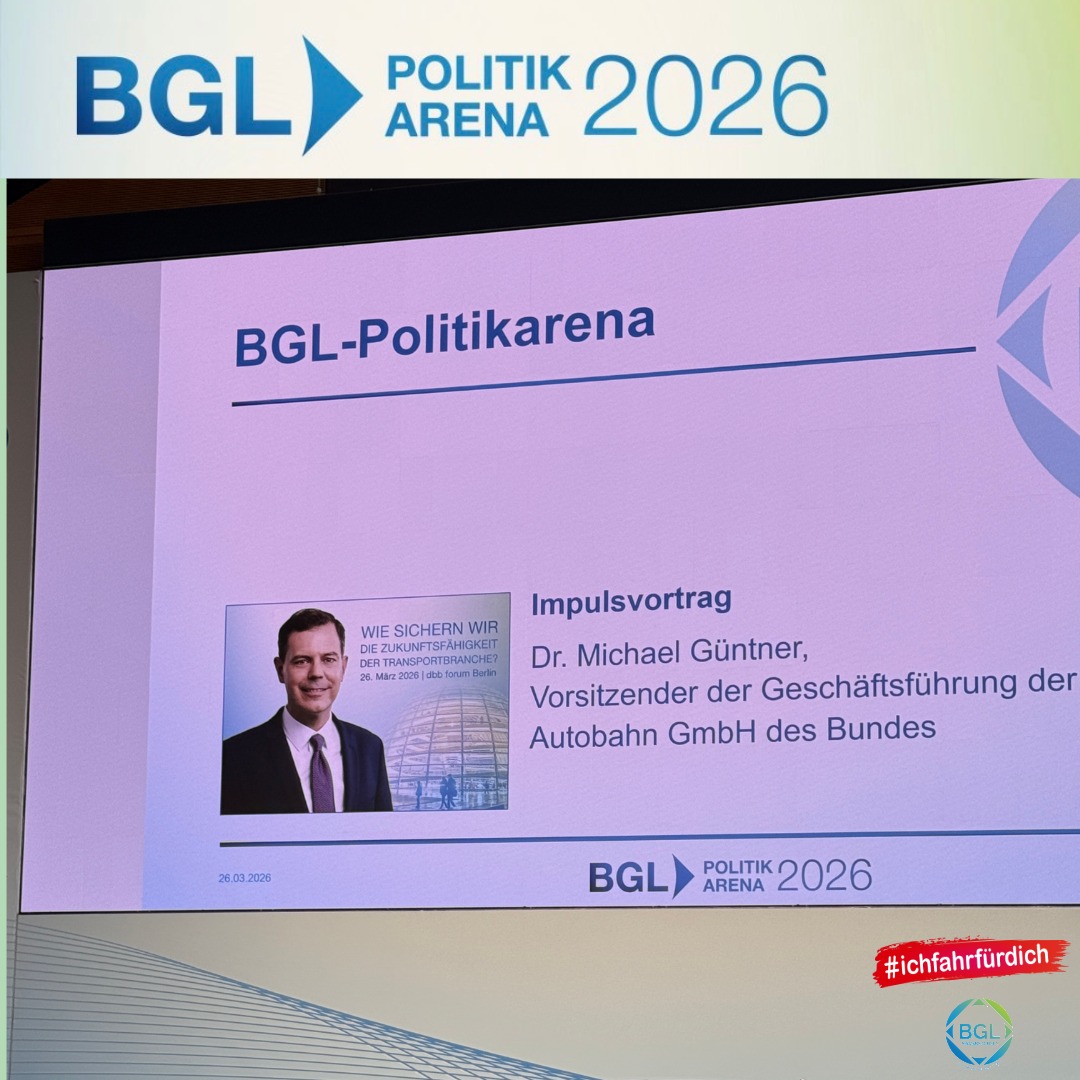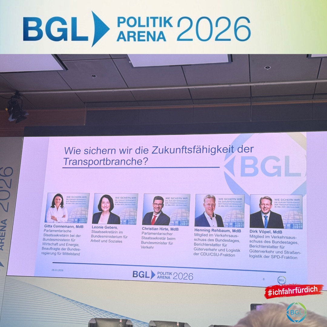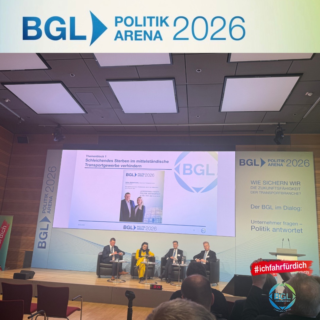 Die BGL Politik Arena 2026 hat deutlich gemacht: Der mittelständische Straßengüterverkehr braucht jetzt konkrete Entlastungen, verlässliche Rahmenbedingungen und gezielte Investitionen in die Straße, um auch unter den aktuellen wirtschaftlichen Bedingungen handlungsfähig zu bleiben.