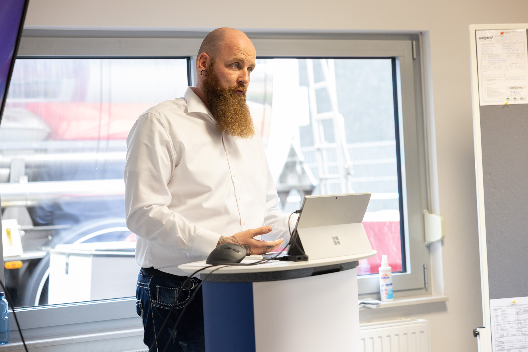 Die vielen Gruppen-Workshops wurden von unserem Ausbildungsleiter Lars Peplies und unseren Referenten Steffen Wendeburg, Stefan Harnisch, Kai-Peter Voss, Jörg Ehlers und Geschäftsführer Stefan Weigand mit viel Engagement vorbereitet und professionell durchgeführt. Thematisch wartete ein vielfältiges und inspirierendes Programm auf die Teilnehmer – vom richtigen Kontakteknüpfen (für Berufskraftfahrer sehr wichtig) über die aktuellen Vorschriften zu Lenk- und Ruhezeiten bis hin zur LKW-Wartung.