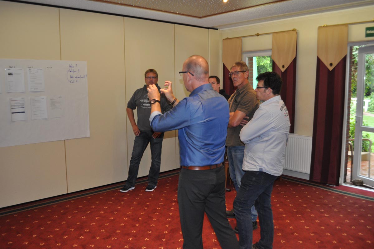 Auch der Geschäftsführer Stefan Weigand hat an der Veranstaltung teilgenommen. In seinem Impulsvortrag malte er die Vision von Weigand-Transporte aus. Die Positionierung im Markt solle weiter ausgebaut werden und dazu sei es wichtig, die Werte und Regeln von Weigand nicht nur zu kennen, sondern auch vorzuleben. Es gelte, im Austausch mit der Gemeinschaft die erforderlichen Maßnahmen zu planen, zu diskutieren und dann eine Entscheidung zu treffen, die gemeinsam getragen und umgesetzt werden könne. Wo können die Kollegen unterstützt werden? Diese Frage stehe im Vordergrund, denn nur mit einer reibungslosen Kommunikation und Kooperation könne ein reibungsloser Ablauf im täglichen Arbeitsleben erreicht werden.