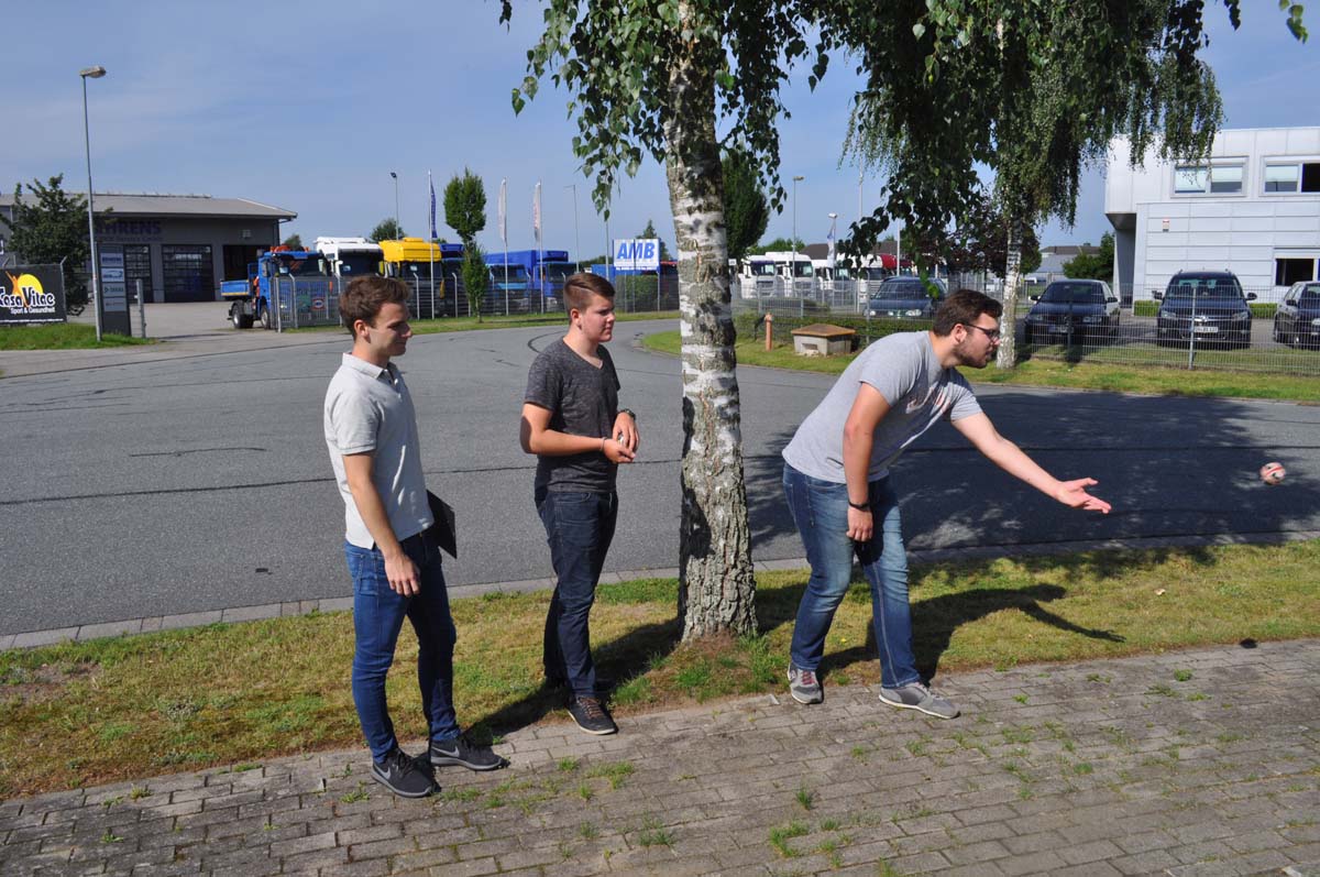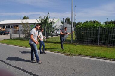 Um besser zu wissen, wo sich der Betrieb in der Nachbarschaft befindet, gab es eine Azubirallye mit einem Cross-Boccia-Spiel und einen Parcour durch das Gewerbegebiet Lengenbostel. Bei dieser Tour durch die Nachbarschaft konnten die Azubis auch gleich ein paar Lieferanten und Kunden von Weigand persönlich kennenlernen.