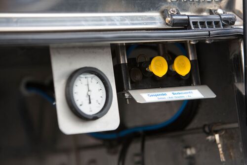 Ein Manometer für den Balkdruck ermöglicht die optimale Verladung selbst ohne Waage. Somit sorgen wir nebenbei für einen schnelleren Ablauf.