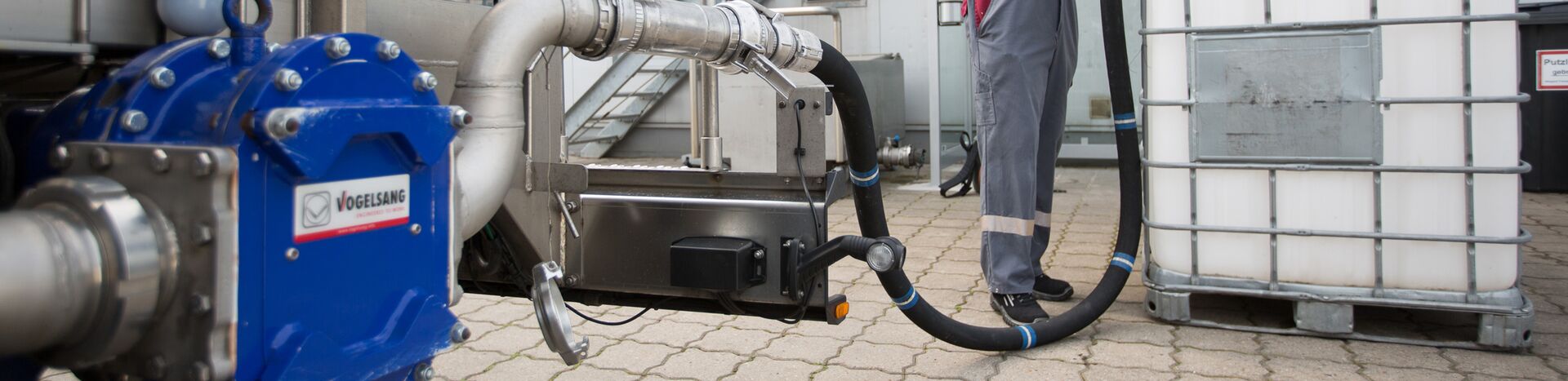 Unser Pumpenwagen ist mit einer modernen Vogelsang-Drehkolbenpumpe mit variabler Förderrichtung ausgestattet.