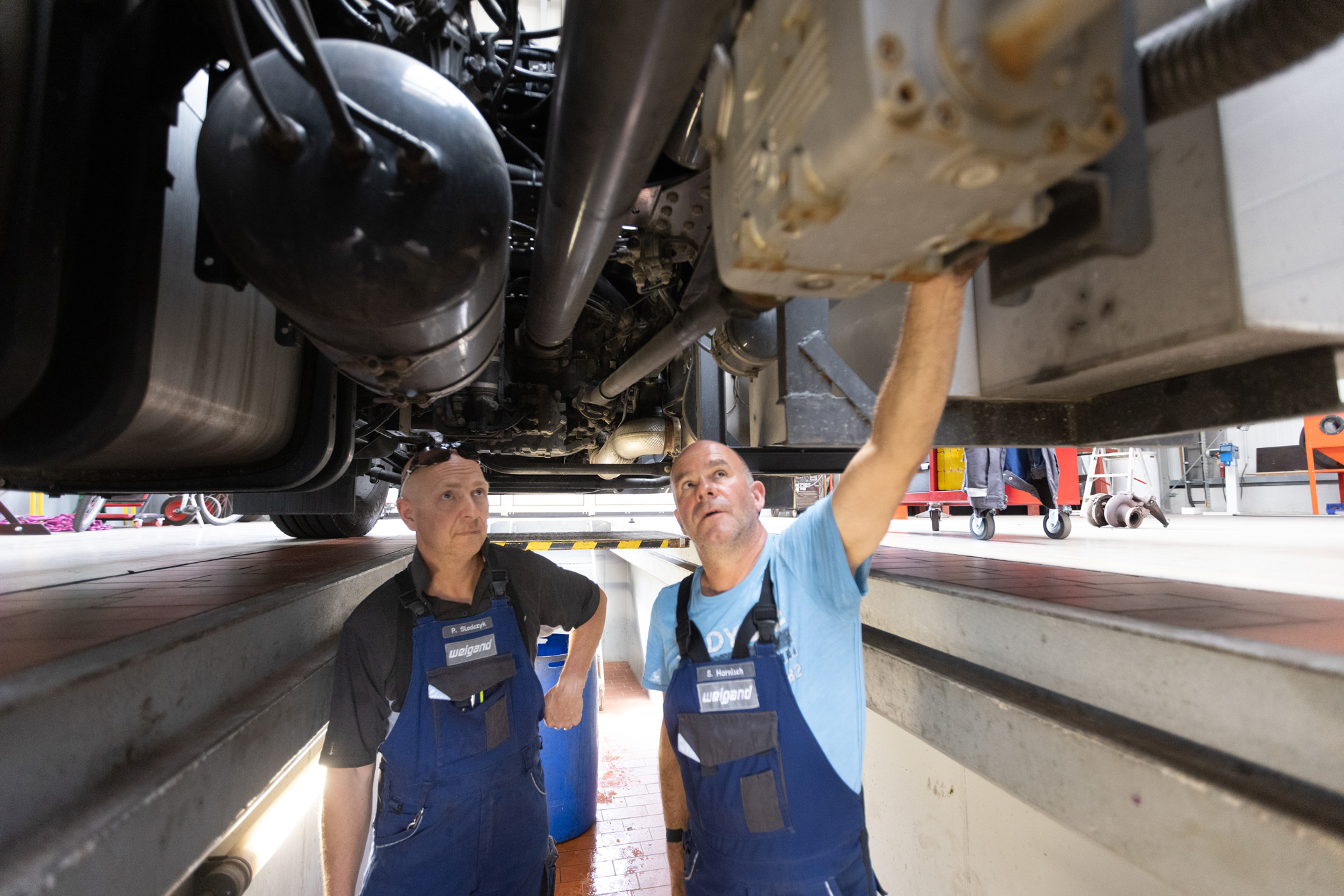 Unsere LKW sollen für sie rollen, deshalb prüfen wir sie regelmäßig auf Herz und Nieren. Und schicken sie schnell und sicher wieder auf die Straße: Denn für‘s Schieben haben wir keine Zeit. ;-)